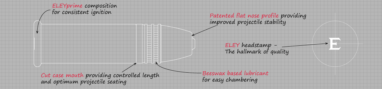 Eley Match. ELEY match is renowned amongst elite competition shooters for its excellent accuracy and performance. Each cartridge is checked by a suite of analytical processes including computer controlled visual inspection and finely calibrated measuring equipment, all overseen by our extremely precise and meticulous engineers.